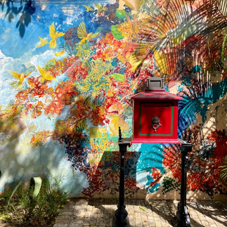 Ich bin also mit meinem Handy-Navi Richtung Wilhelmstadt gefahren, wo sich das Landhuis (ist ja alles holländisch hier) Bloemhof befindet. Hier arbeiten immer unterschiedliche Künstler in verschiedenen Ateliers. Das Landhaus befindet sich inmitten eines verwunschenen Garten. Der eigentliche Grund, dass ich dahin wollte, ist eine Kathedrale komplett aus Dornen gebaut, die dort steht. Und ich muss sagen WOW ! Das hat mich beeindruckt. Im ganzen Garten stehen Skulpturen und Installationen, aber die Krönung ist eben dieses Dornengebäude, was wie eine Art Labyrinth aufgebaut ist. Eingebettet in diese imposanten Dornenwände sind verschiedenste Kunstwerke einheimischer und internationaler Künstler. Ich fand das ziemlich spannend und hätte zu gern ein oder zwei Objekte mitgenommen. Man hat mir auch berichtet, aus wie vielen Dornen die Kathedrale besteht. Hab ich aber schon wieder vergessen, es waren einfach zu viele. Ich habe hier den ganzen Vormittag verbracht und dann schön im wunderbaren angeschlossenen Cafè auf einer schattigen Terrasse mit erfrischend rotierenden Deckenventilatoren gefrühstückt.