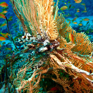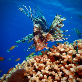 Wir sind heute zum Lighthouse gefahren. Das liegt mitten im Stadtkern und ist eigentlich ein Leuchtturm, der für mein Empfinden etwas zu klein geraten ist. Wenn der leuchtet, illuminiert er eher die Stadt, denn irgendwelchen Seefahrern Zeichen zu geben. Bis zum Wasser sind es ca 80m zu Fuß. Wir waren sehr früh da, keine anderen Taucher vor Ort. Irgendwie hat das schon was skurriles, sich mitten in der kleinen Stadt anzurödeln (Anzug und Equipment anlegen). Auf einem kleinen Platz parken unsere Pickups und zwischen Kardamom- Duft, Tee, getrockneten Chilis, Gewürzen und frisch gebackenem Fladenbrot schlüpfen wir in unsere Anzüge. Niemand guckt doof, da das Tauchen hier zum Alltag der Dorfbewohner gehört. Trotzdem der heutige Tauchplatz mitten in der Hauptbucht liegt und quasi alle Anfängerkurse hier stattfinden, ist das Riff sehr schön. Irgendwer hat einen riesigen Metallelefanten im Wasser versenkt. Wir tauchen los und plötzlich auf 15 Metern Tiefe steht da der Elefant im Sand ! Der wirkt wie ein künstliches Riff und es finden sich dort viele Fische ein.