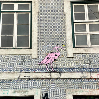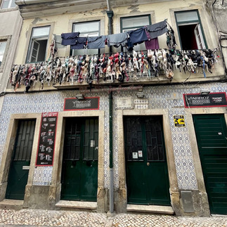 Von meinem Balkon kann ich über die ganze Stadt gucken und sehe sogar die berühmte Brücke des 25. April- oder halt die portugiesische Variante der Golden Gate Bridge. Herrlich. Früh am Morgen hab ich mich um 8 Uhr dank seniler Bettflucht aufgemacht, die Stadt zu erkunden. Es war kein Mensch auf den Gassen, die Kopfsteine der Wege waren noch nass und rutschig vom Regen und so musste ich gut aufpassen, um nicht bergab zu schlittern. Viele der Häuser in der Altstadt sind mit bunten Kacheln verkleidet und das sieht ziemlich schön aus.