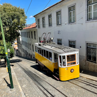 So bin ich denn 10 km gelaufen und habe 18 Stockwerke erklommen (sagt meine Gesundheits- App auf dem Handy). Ich hab den berühmten Stahl-Fahrstuhl eines Schülers von Eiffel gefunden, bzw. stand plötzlich davor. Leider war ich zu früh dran, denn es war noch nicht geöffnet. Dann bin ich entlang der berühmten Straßenbahnlinie 28 gelaufen. Da fahren noch die ganz alten Holzbahnen aus der Jahrhundertwende mit Getöse und Gequietsche bergauf- und ab, wobei die Bahn fast ausschließlich von Touristen und Taschendieben genutzt wird.
