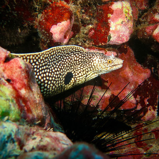 Heute war mein erster Tauchtag und es ging mit Verspätung los, da der Bootsschlüssel verschollen war. Man trifft sich auf der Tauchbasis, baut sein Equipment zusammen und fährt dann mit nem Pickup zum Pier, wo alles aufs Boot (es handelt sich um ein großes schnelles Schlauchboot) gepackt wird. Heute war wieder ganz schön wellig, so dass ich irgendwann froh war schnell im Wasser zu sein, um nicht seekrank zu werden. Ich muss ganz schön aufpassen. Es ist hier deutlich näher am Äquator und man bekommt irre schnell Sonnenbrand und da wir die Oberflächenpause auf dem Boot verbringen, welches kein Dach hat, heißt es vorher schön eincremen.