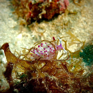 Aber diese weiße Schöne wollte es heute wissen und Portraitfotos bekommen. Dann wohnte sie auch noch ausgesprochen dekorativ neben einer tollen Muschel und im Vorgarten hatte es sich ein Einsiedlerkrebs samt Häuschen bequem gemacht. Den sieht man übrigens auch auf den Fotos. Ich hätte Stunden da vor ihr liegen und fotografieren können, aber das strapaziert meist die Geduld der Mittaucher extrem.