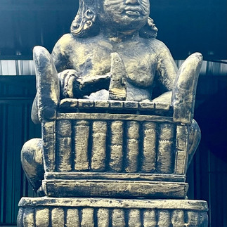 Heute war ein Ausflug geplant. Es gibt hier auf der kleinen Insel so einiges zu entdecken und es ist spannend einfach die Gegend zu erkunden. Wie in ganz vielen asiatischen Ländern wollen alle ihr Haus direkt an der Straße haben. Dahinter ist es grün und üppig, aber nein, es muss möglichst nah am Verkehrslärm sein. Wenn man fragt, warum das so ist, lautet die Antwort: wegen der bösen Geister. Die mögen nämlich gar keinen Lärm und bleiben dann von den an lärmender Straße stehenden Wohnhäusern fern. Ich frage mich jetzt natürlich, was denn mit den guten Geistern ist? Ob die wohl Lärm mögen? Irgendwie konnte oder wollte mir das niemand beantworten. Es gab heute mehrere Tempel zu besichtigen. Einer davon in einer riesigen Höhle. Man muss trotzdem man lange Hosen trägt einen Sarong (langes Tuch) ausleihen, der nicht einfach so um die Taille gewickelt wird. Die sachkundige Sarongverleiherin am hiesigen Eingangskiosk wickelt einen rigoros ein und dann wird man mit einem breiten Stoffgürtel festgezurrt. Das hatte in meinem Fall zur Folge, dass ich mich nur noch wie eine Geisha in Trippelschritten fortbewegen konnte. Der Eingang zum Höhlentempel liegt am Ende einer steilen Treppe gen Himmel mit nicht DIN genormten riesigen Stufen, die ich nun, ob meiner Einschnürung nur seitwärts und mit großer Mühe erklimmen konnte. Oben angekommen, war ich fix und fertig, denn es war sehr sehr heiß und die extrem hohe Luftfeuchtigkeit trägt auch nicht zur besseren Belüftung einer Wickelgeisha bei. Der Höhleneingang ist ein winziges Loch, durch welches ein Mitteleuropäer nur auf dem Po sitzend und zusammengeklappt rutschen kann. Gott sei Dank passten auch die Einheimischen nicht viel besser da durch, so dass der Fels schon von tausenden Popos glattgeschliffen war, was den Eintritt— besser Einrutsch wesentlich erleichterte. Drinnen musste man noch einige Meter weiter rutschen bevor man sich wieder in Gänze aufrichten konnte. Ich hatte eigentlich gehofft, dass es drinnen so richtig schön höhlenhaft kühl sein würde. Leider nicht. Es war eher wie in einer Ayurvedischen Dampfsauna, dunkel, feucht und die Luft von tausenden Räucherstäbchen geschwängert. Dafür stand ich jetzt in einer riesigen Höhle mit einem großen und mehreren kleinen Tempeln und jeder Menge Fledermäusen. Es gab gerade einen Gottesdienst und so wurde der Raum vom melodischen Singsang und Glöckchengebimmel erfüllt. Ziemlich beeindruckend war das. Draußen wieder angekommen (der Ausgang war zum Glück eine normale Tür ohne Poporutsche) stand man in üppigem Grün und frischer Luft - herrlich.